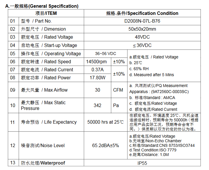 企业首页    风机风扇    DC 风扇    D2008N-07L-B76【5020风扇】48VDC 0.37A 14500RPM 直流风扇